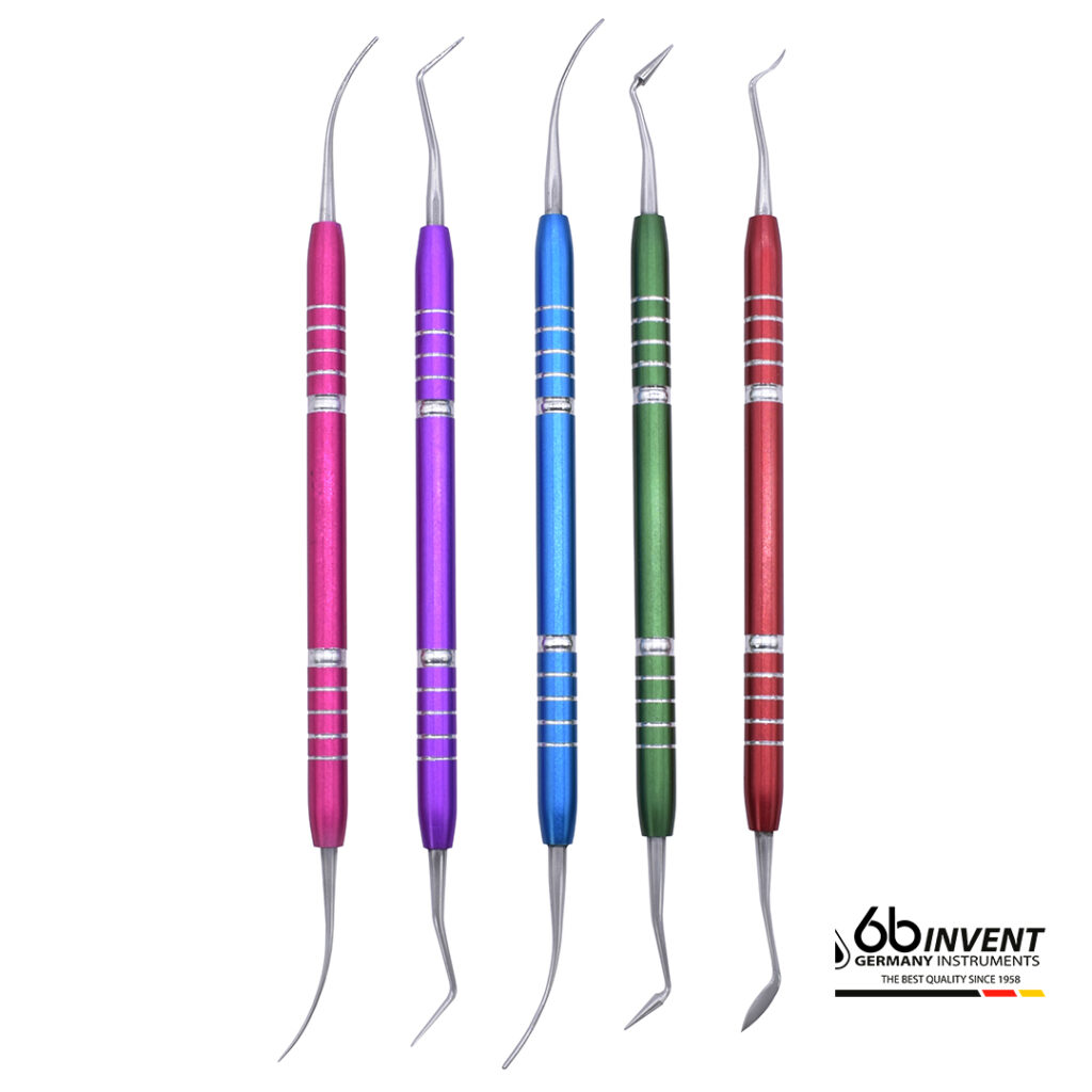 A set of spatulas specially designed for making details of the dental anatomy in a wax-up. Equipped with a hexagonal handle.
